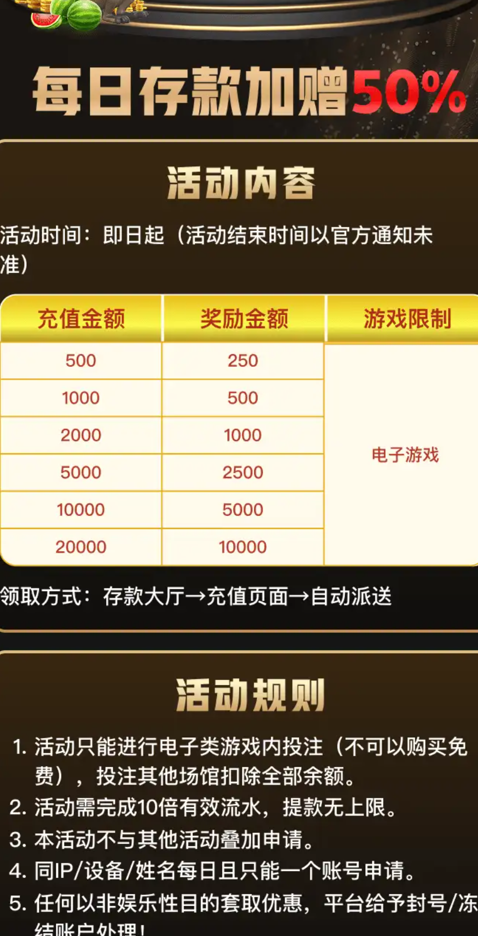 每日首存50%,500+250/1000+500/2000+1000