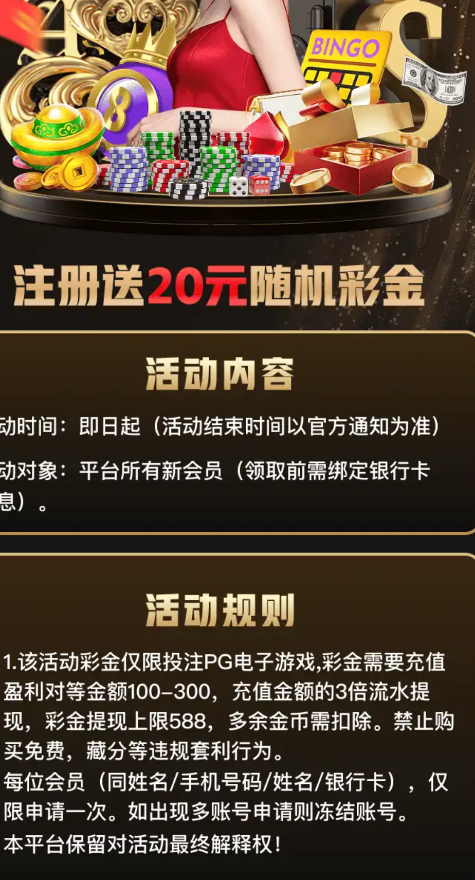 注册送随机20彩金