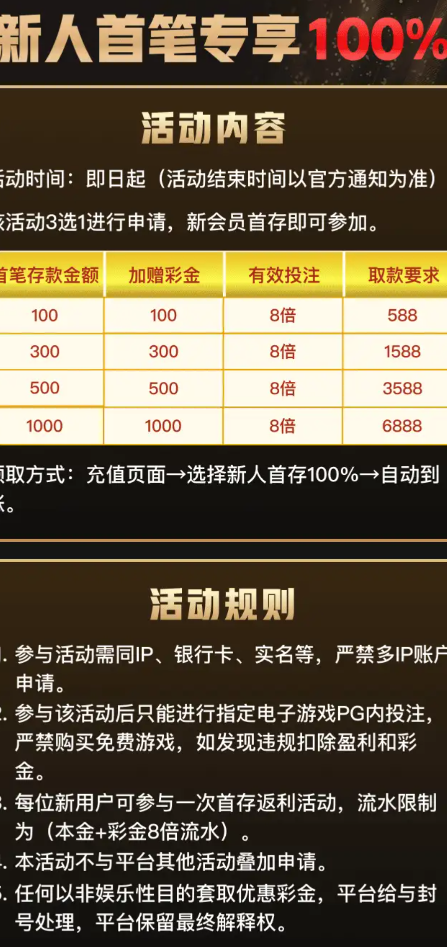 新人首存 100+100/300+300/500+500/1000+1000