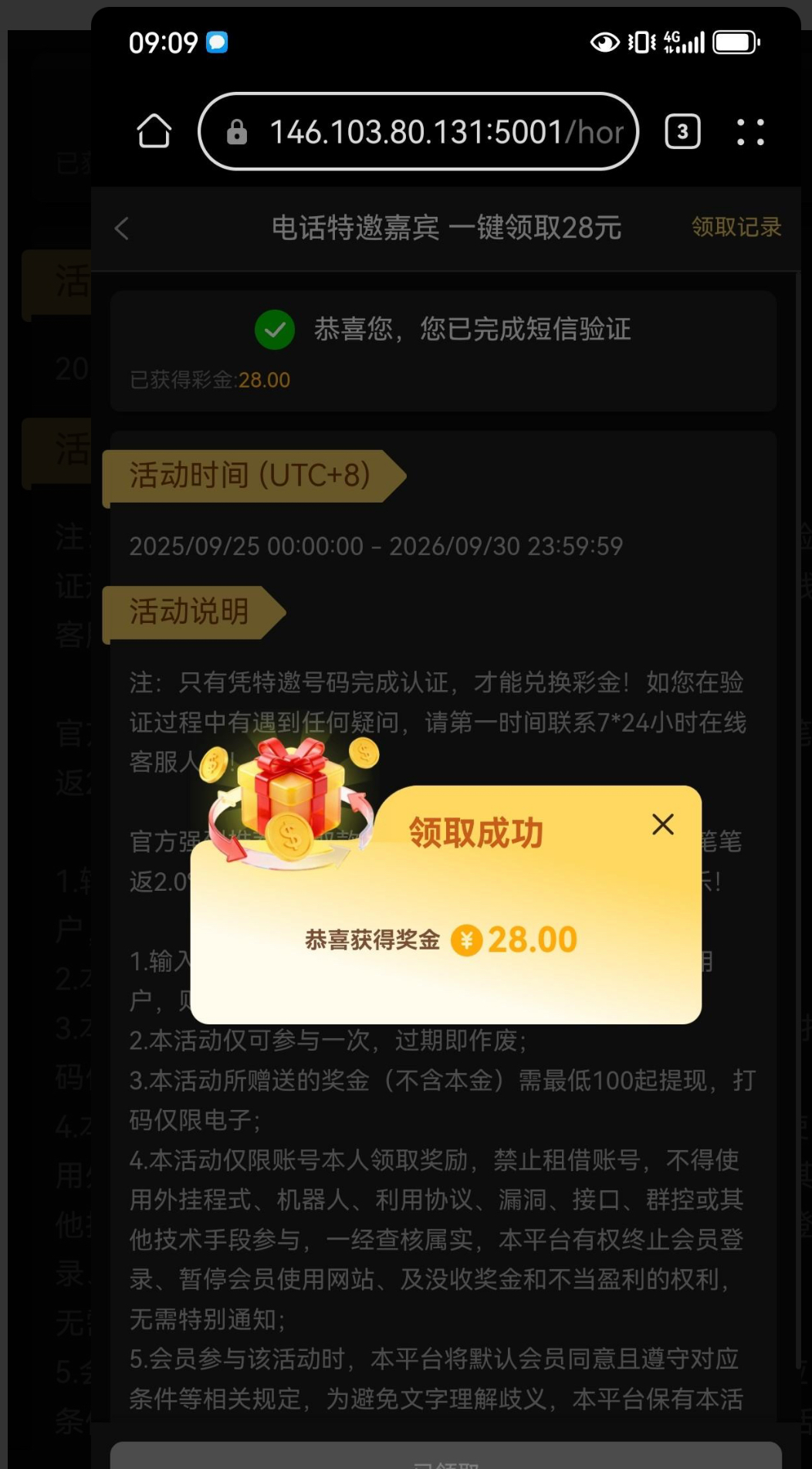 若提示活动开始后绑定手机才能领取,安全中心可以更改手机号